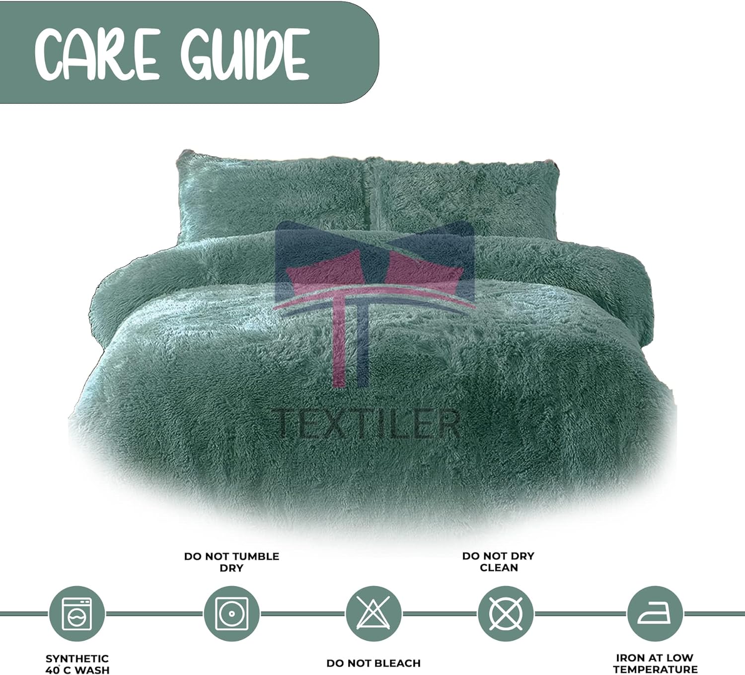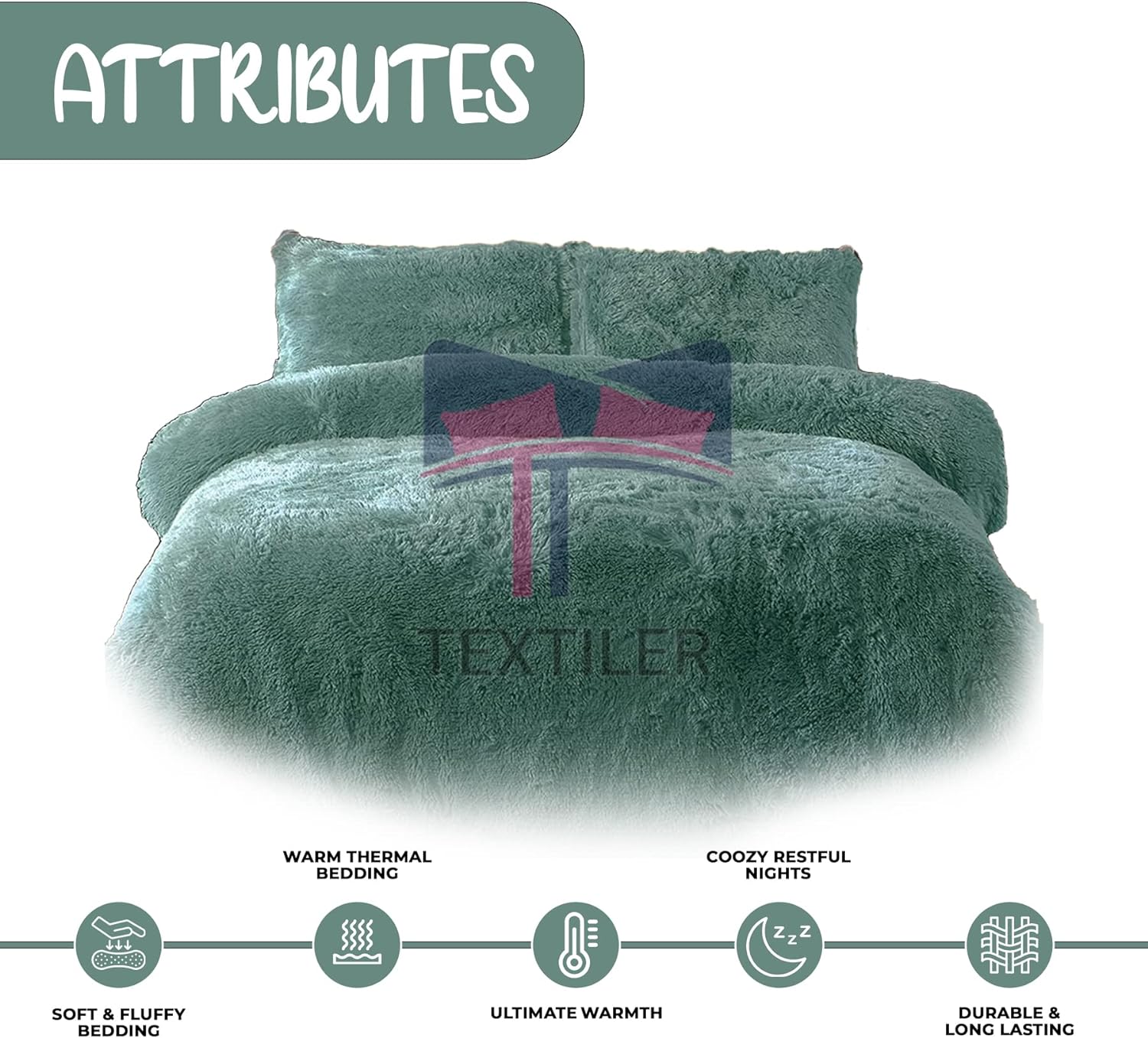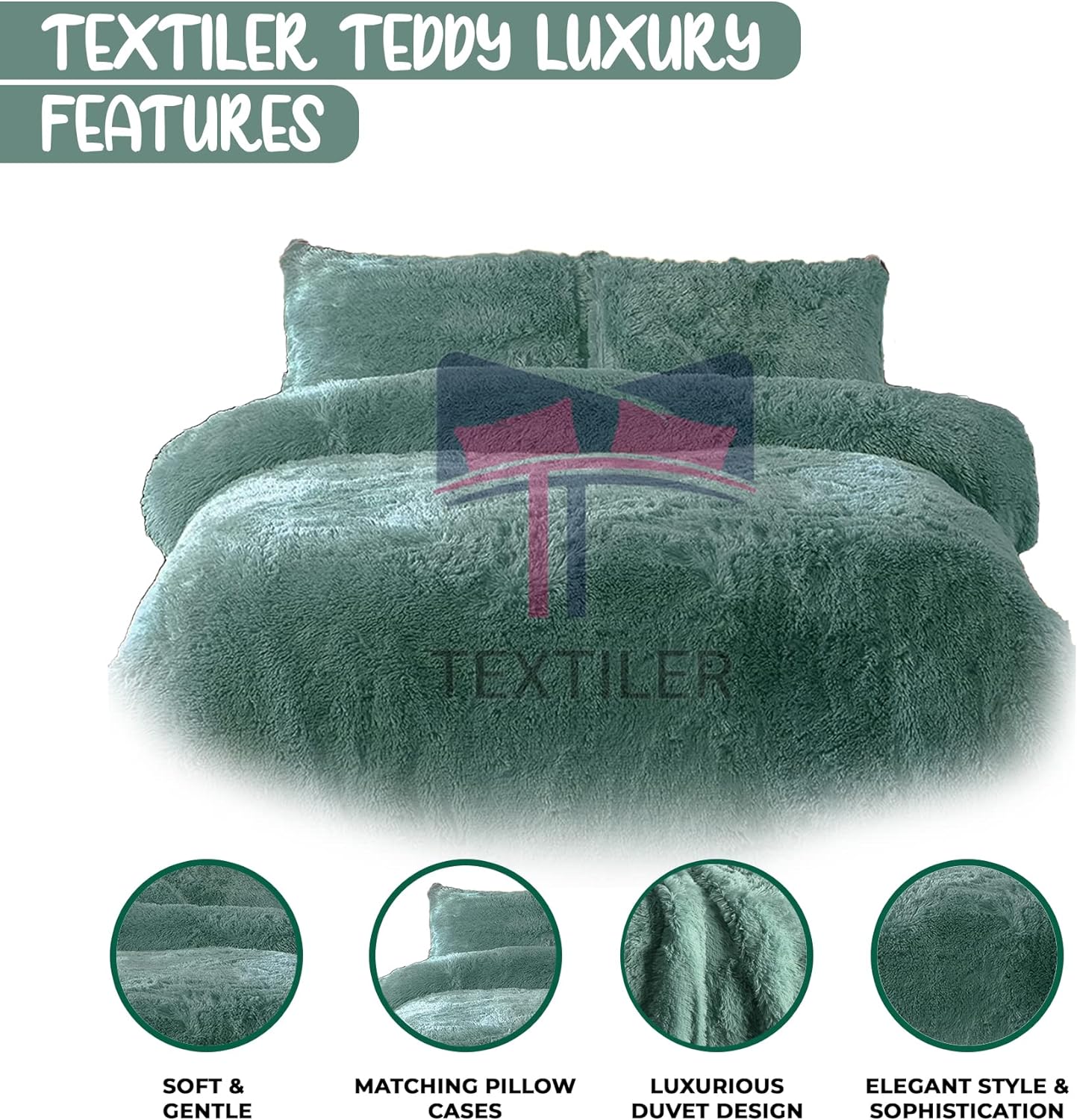 TEXTILER Teddy Fleece Duvet Set-Teal Teddy Bear Bedding Sets, Thermal bedding with Fluffy Pillow Covers,Super King Duvet Covers Set (Teal, Super King Size Long Fleece)